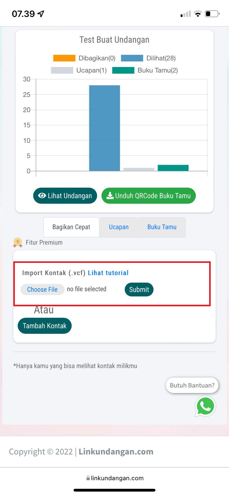 Cara upload contacts.vcf ke aplikasi web linkundangan